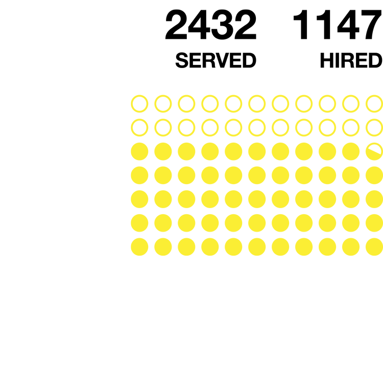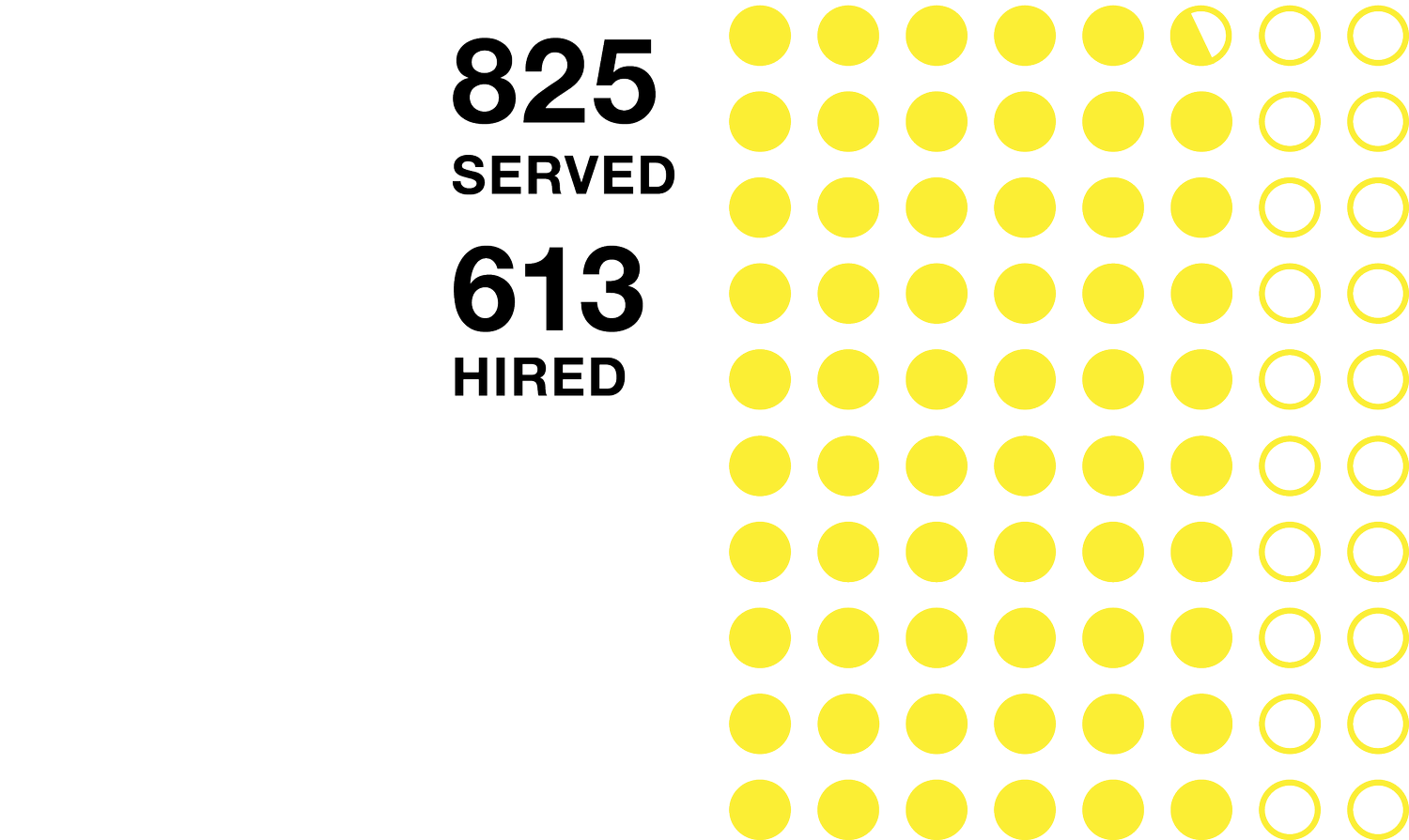 With your support, we’ve had an incredible year of growth. This past year, we worked with over 700 individuals, 422 of whom received jobs. We’ve built community partnerships with over 150 Community Based Organizations who extend our work into their communities. We know that for each individual who gets a job, a whole family is impacted. With an average family size of five individuals, we see a total of over 2,000 people whose lives have been transformed through an employment opportunity.